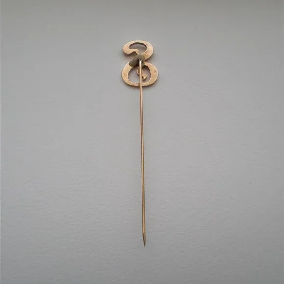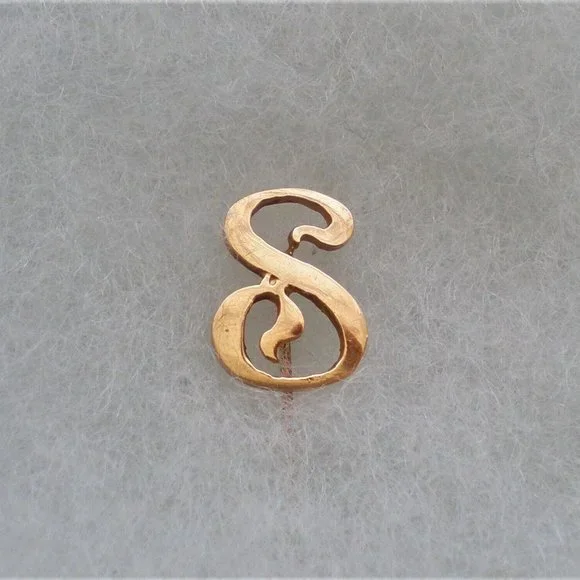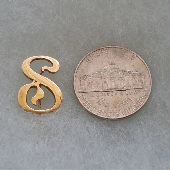 Antique Victorian Edwardian 14K Gold S "S" Initial Hat Pin Stick Pin Brooch