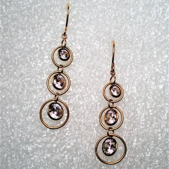 Sign up forusing my code TRAVELINGFROG to get $10 off your first purchase!Beautiful Vintage Designer solid 14K Yellow Gold bezel set CZ Drop Dangle Pierced Earrings (marked on hooks "14K ICM DO CZ" and acid tested). They measure about 1 5/8" in length (with hook) by about 9.5mm in their widest. Bezel set CZs vary in size from 3.25mm to 4.75mm in diameter. These unique earrings weigh approximately 2.1 grams and are in great vintage used pre-owned condition.