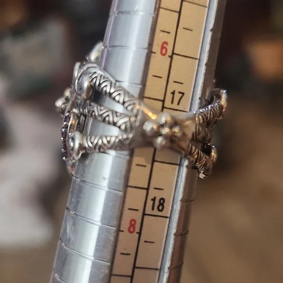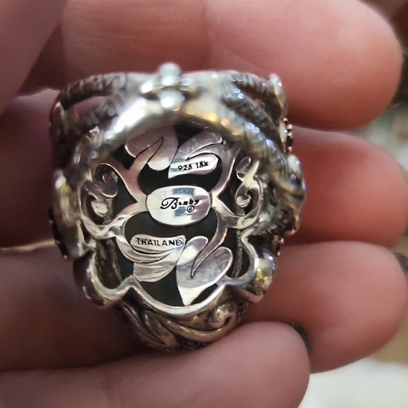 Barbara Bixby ring size 7Barbara Bixby Sterling Silver with 18K gold floral accents large oval faceted pinkish druzy ornate ring in Size 7.Marked inside. Made in ThailandIf you have any questions, please contact me.