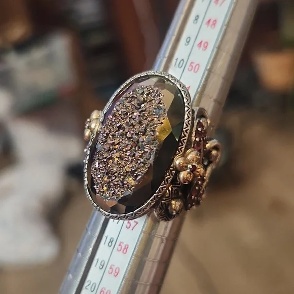 Barbara Bixby ring size 7Barbara Bixby Sterling Silver with 18K gold floral accents large oval faceted pinkish druzy ornate ring in Size 7.Marked inside. Made in ThailandIf you...