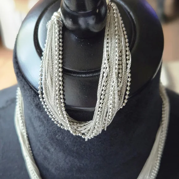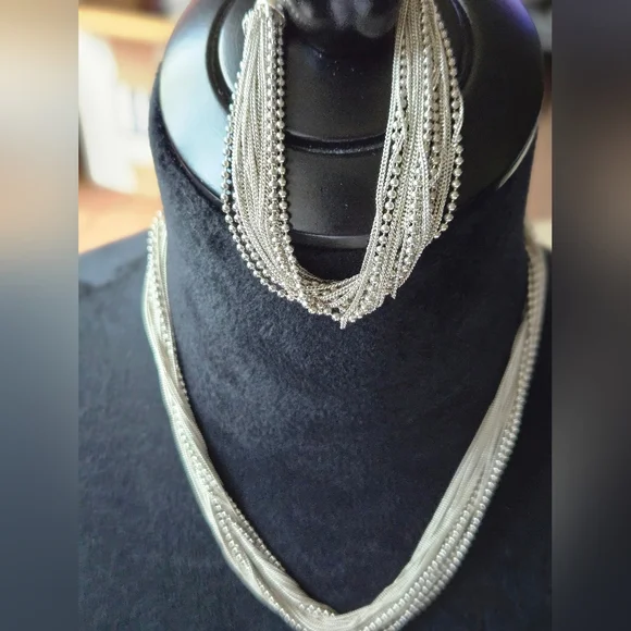 Italian Sterling Silver Layered Necklace and Bracelet Set