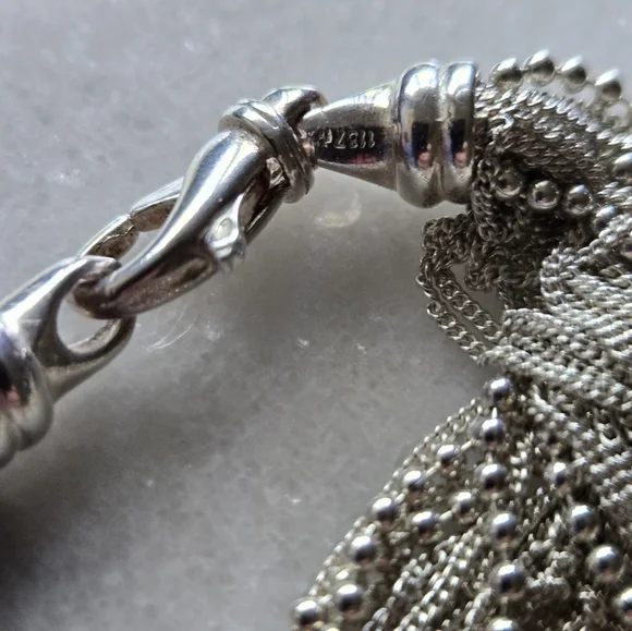 Stamped 1187 VIsee photosRegistered in Vicenza, Italy.Blue Gift Box IncludedNecklace is 16" 48.54gramsBracelet is 8" 21.12 grams Stamped 925 See Photos Meaning:"1187 VI" is an Italian hallmark or registration number, with "1187" being the specific registration number and "VI" representing the province of Vicenza, Italy. Manufacturer:This mark is associated with Bernardotto Argento srl, a jewelry manufacturer located in Lisiera di Bolzano Vicentino, Vicenza, Italy. Context:This type of mark is commonly found on Italian silver or gold-on-sterling silver pieces, often alongside a ".925" stamp indicating sterling silver purity.