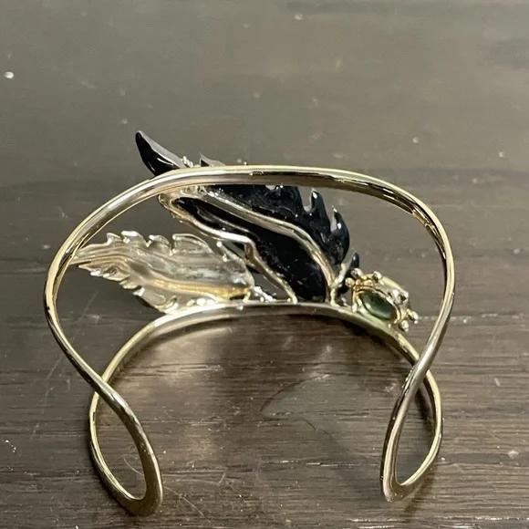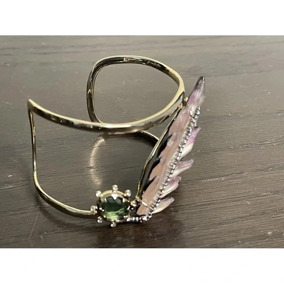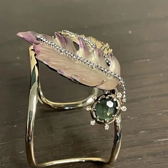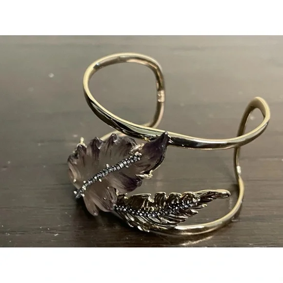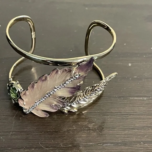 Chic bracelet with a feather motif. Features champagne and purple Lucite with delicate crystals and green stone/crystal hues. New no tags with pouch. I have matching ting and...
