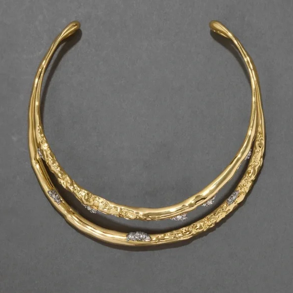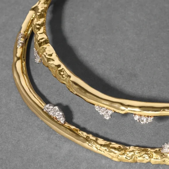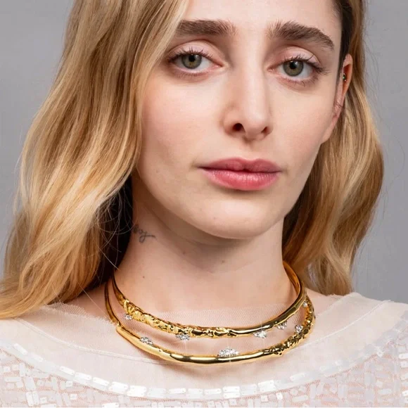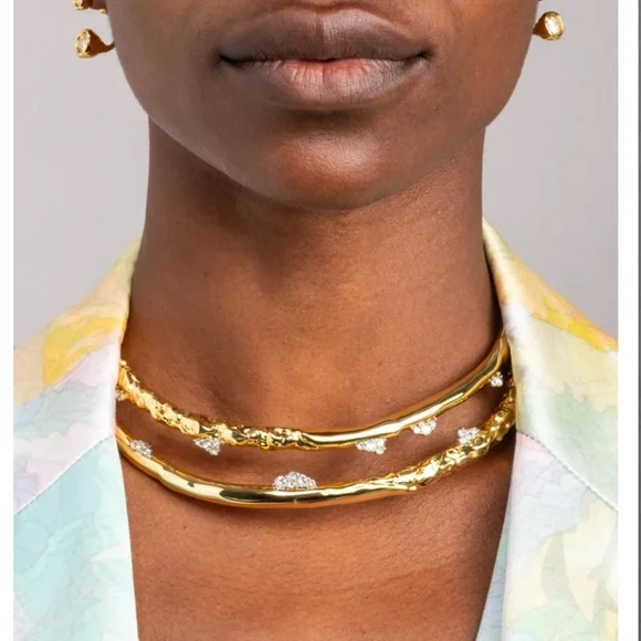 Alexis Bittar collar necklaceApprox. 4.75" inner diameter14-karat gold-plated brassCrystals in rhodium-tone settingsSlip-on styleWipe cleanBrand new without tag.