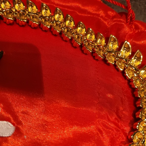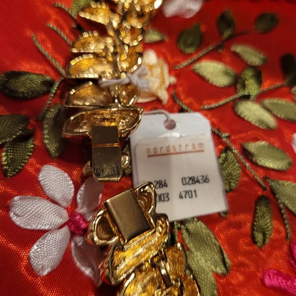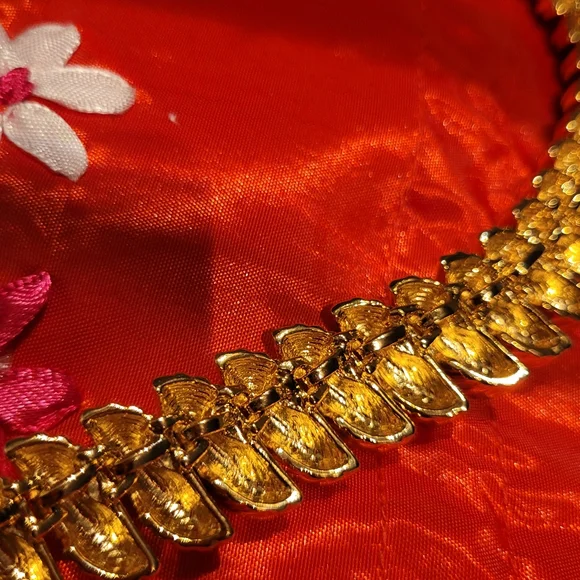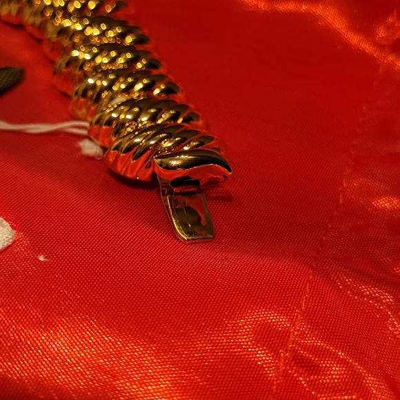 Necklace has tag attached, has not been used by me. I am selling as I bought. Necklace is not marked but tag attributes to St. John. The necklace has a lot of weight to it.