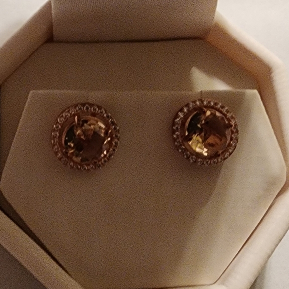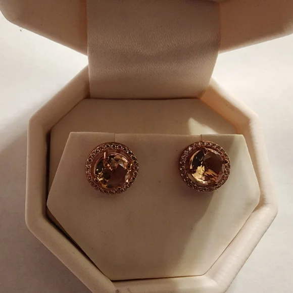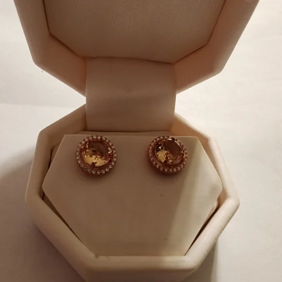 Rose Heirloom Round 4.00 ct Morganite Earrings- Rose Heirloom Gold/Sterling Silver- 4.00 ct- in box but box shows signs of wearinvoice 3540lot 10tag 21tag no 2.21.00b