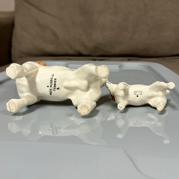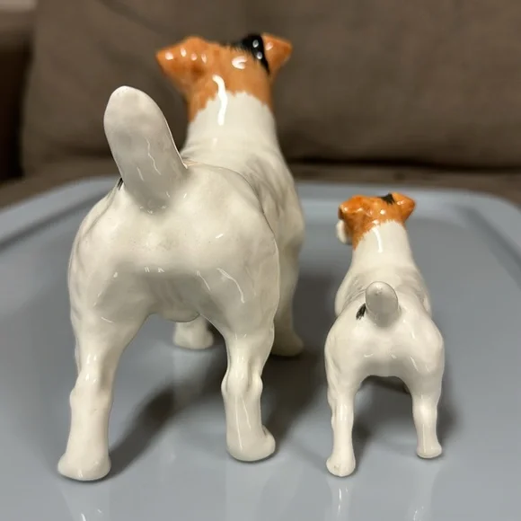 Beswick Jack Russell Terriers Father & Son Porcelain Gloss Model #2023/2109Made in England Bigger is 5” tall 6” longSmaller 3” tall 3.5” longBeautiful figures in excellent...