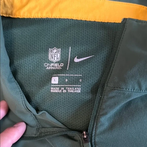 Official NFL Packers jacket by Nike. Features team logo and NFL patch. Comfortable and stylish.