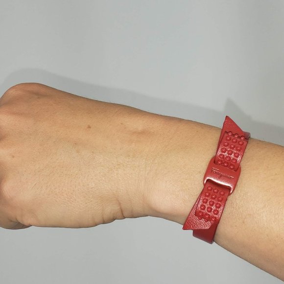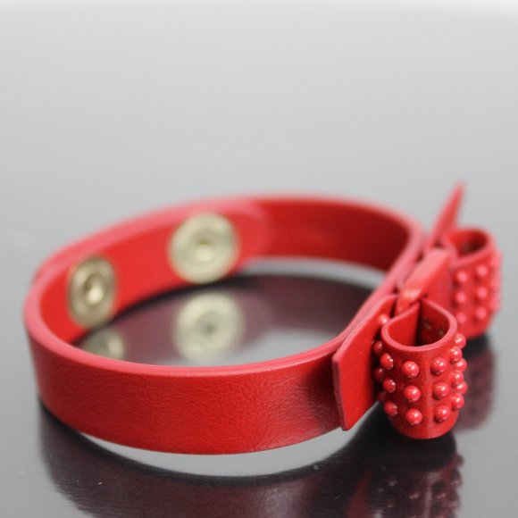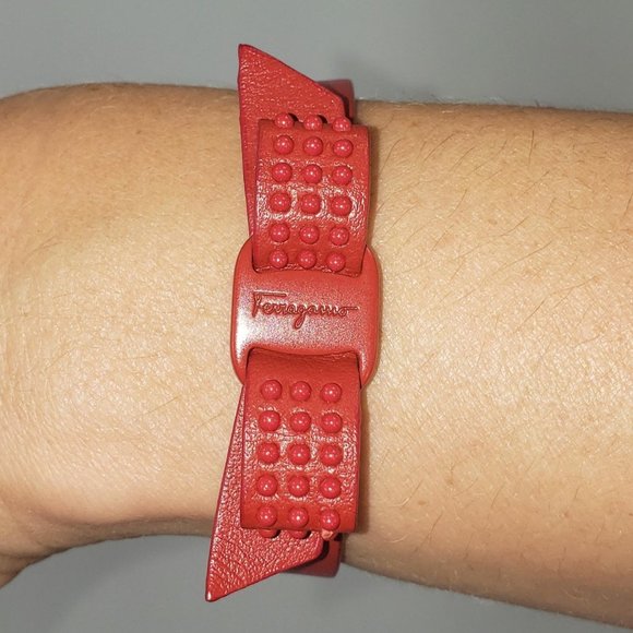 Lipstick red braceletSignature vara bow with textured ridgesFeatures Ferragamo logo at the center100% leathersnap closures8" x 0.5" strapAdjustable snaps at 7.75" and 6.75"Product...