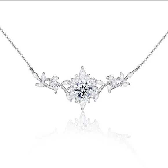 GRA Certified 2 CT. Sterling Silver Moissanite Festoon Necklace. 2 Carat center stone.Stunning high end elegant necklace.Color: DClarity: VVS1Cut: RoundLength: 17.72"J2 - 2