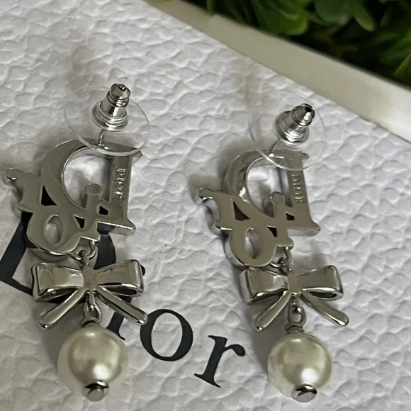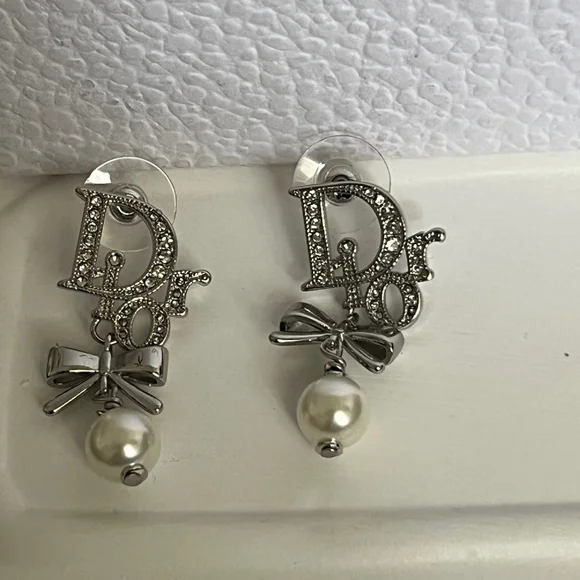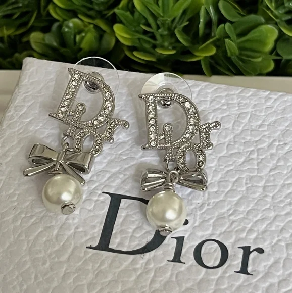 Condition perfect like new Chic Dior earrings with crystal accents. Features a bow and pearl design.