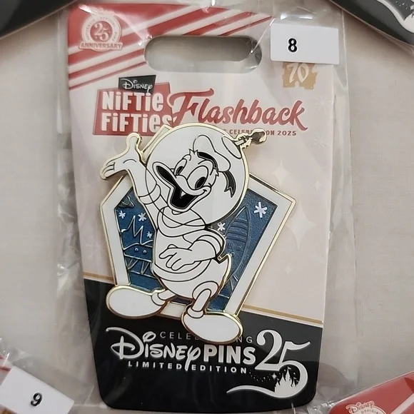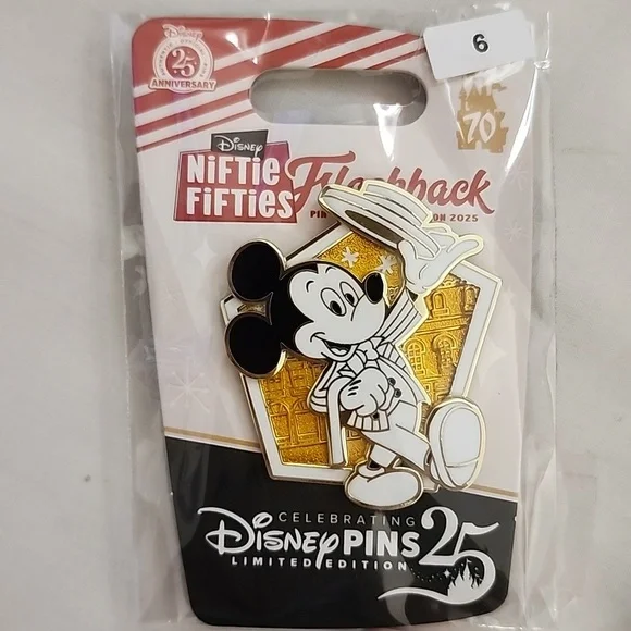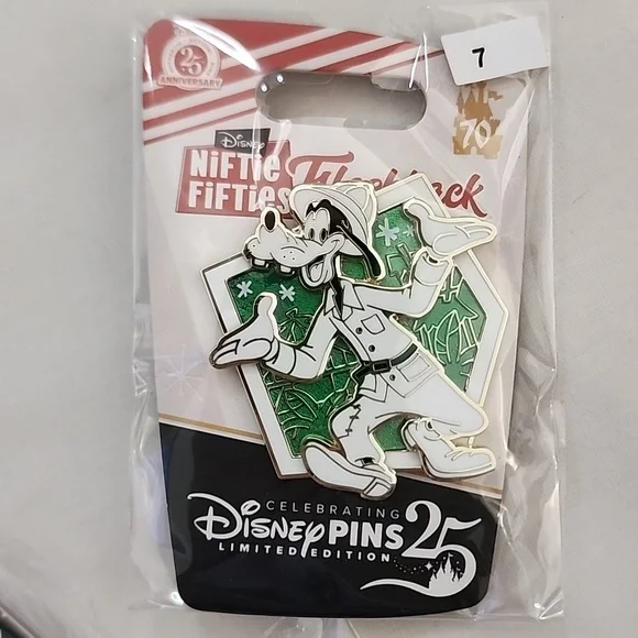 Brand new in sealed package Disneyland Niftie Fifties pin event 5 pin series. Each character is a pin on pin with translucent fill. All 5 pins are a limited edition of 500...
