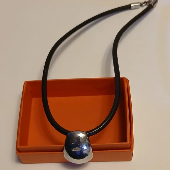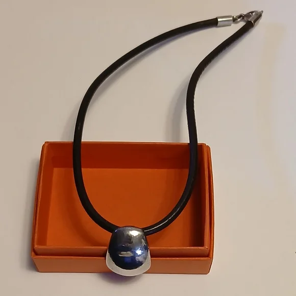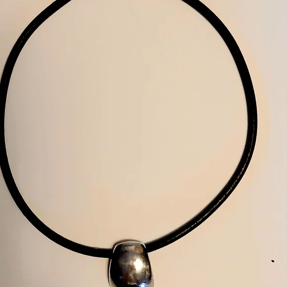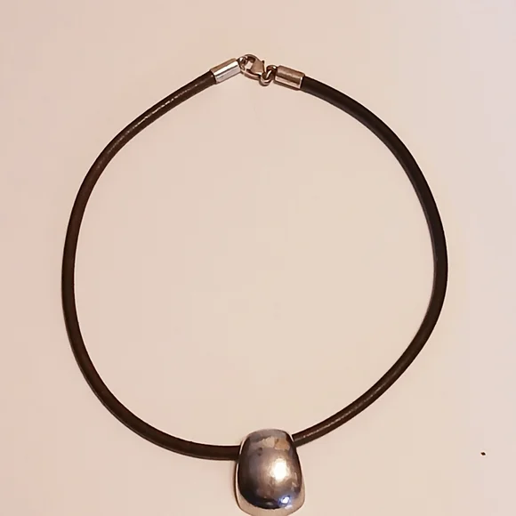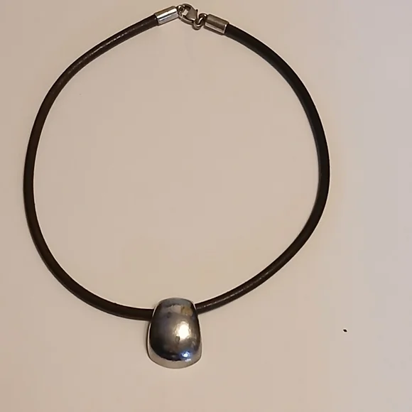 SELLING AS IS!! James Avery dark brown/black leather choker necklace with retired James Avery Curio Pendant. Choker lenght in 16 inches end to end.PLEASE SEE ALL PICS,leather on...