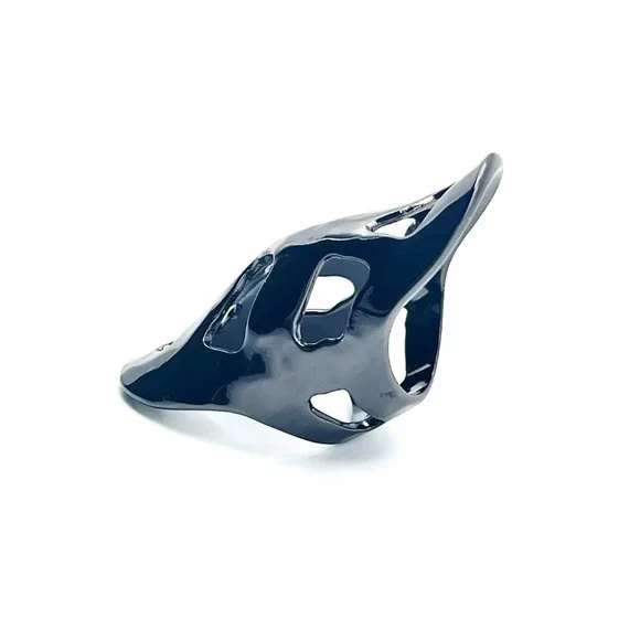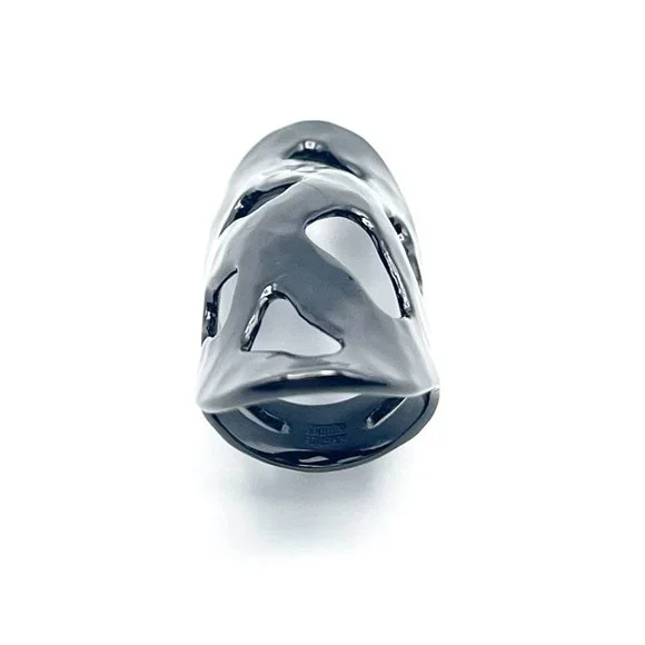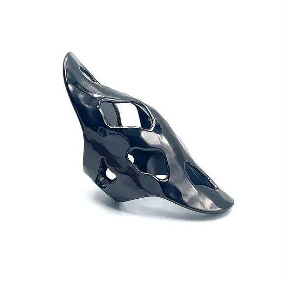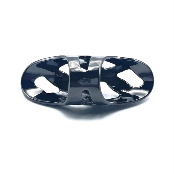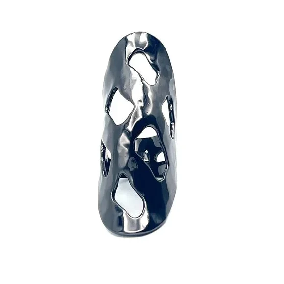 Signature Robert Lee Morris knuckle ring with cutouts.In great pre owned condition with negligible signs of wear.Handmade in gunmetal plated brass andmeasures approximately 2-1/4"...