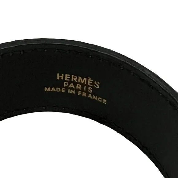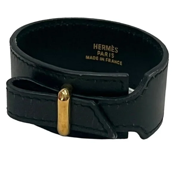 "Artemis" Scarlet Yellow, leather bracelet accented by gold-plated, metal "H" logo charmColor: Black & GoldMaterial: Leather & Gold-plated MetalFastening: LoopMade/Handcrafted in: FranceBox/Dust Bag: NoSizing & Measurements (approx.):Overall length: 9.5"Size: fits up to 7"Width: 7/8"Condition: pre-owned (zoom photos)Leather - couple of faint scuffsGold hardware - couple of barely visible micro scratchesNotes*:Authenticity 100% GuaranteedCamera lighting and reflections may pickup some tiny white/dark lint and/or create some color variation/shadows/glare spots/marks that are not actual defects (please ask if unsure).Color may appear differently on varying monitors and device settingsEstimated Retail - current comparable style estimated new MSRP price