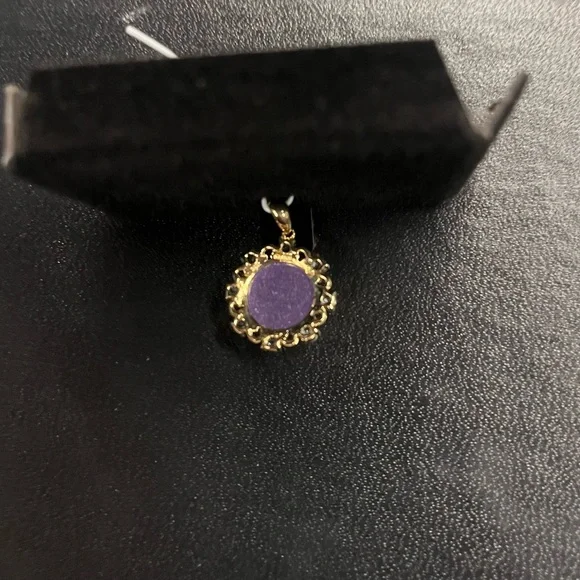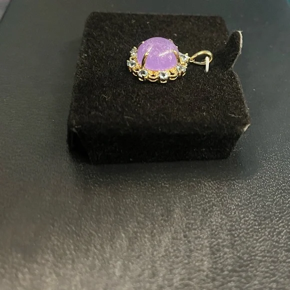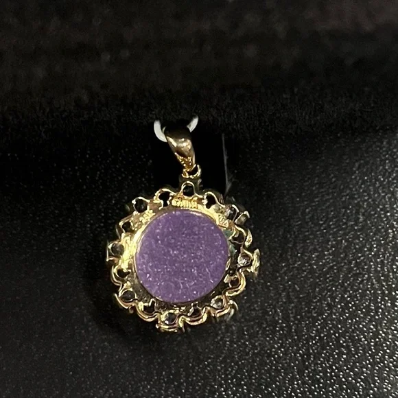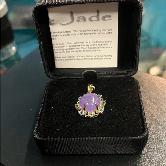 Vintage Lavender Jade 14K Gold Pendant with Blue Topaz
