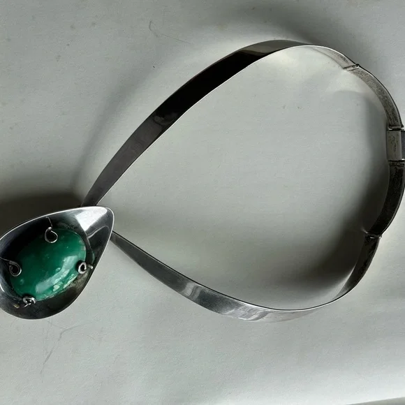 Very large and heavy TAXCO 925 Sterling silver necklace with natural stone