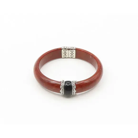 925 Sterling Silver Genuine Black Diamonds Black Onyx & Jasper Bracelet BT6953
