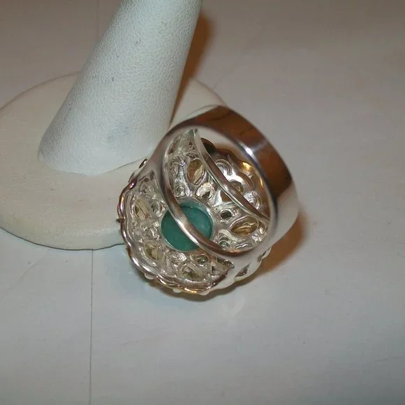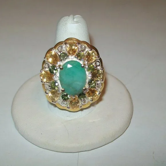 LOVELY 8CT NATURAL ZAMBIEN EMERALDFINE SILVER COCKTAIL RING SIZE 8