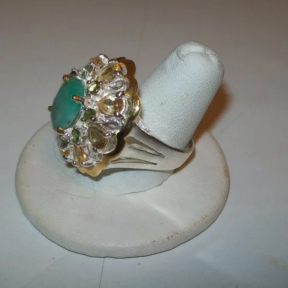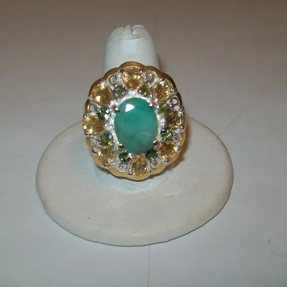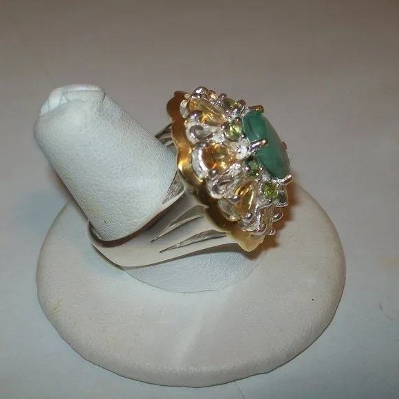 GORGEOUS!SO MUCH PRETTIER THAN THE PICS..........SET IN FINE SILVER WITH 14KTGOLD ACCENTS AND RARE PERIDOT AND CITRINE ACCENTS......THESE ARE ALL NATURAL STONES MINED IN AFRICA.AAASIZE 8