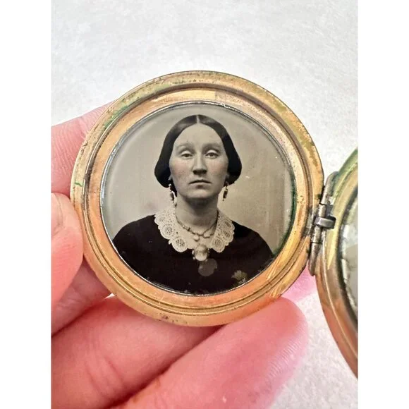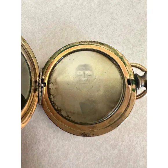 Antique Victorian 1850s 10k gold filled pocket watch locket Daguerreotype photos