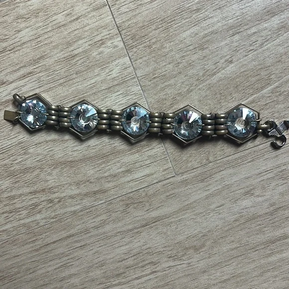 Bold brass bracelet by NY designer Auden with hexagon crystal accents.