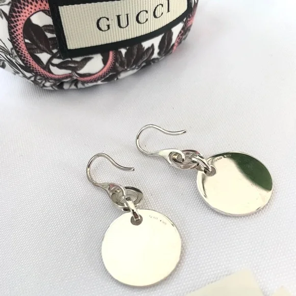 Make these darling drops your new go-to earrings. Crafted with polished sterling silver, each earring in this pair boasts a round drop that´s adorned with ´s trademark design. Everyone from your best friend to your significant other will know you’re wearing – and that’s exactly how you like it!Sterling Silver1-3/4"L x 3/4"W x 3/16"HFrench HookBack of earrings is blank so can be engraved Brand new in original packaging with pouch, box and booklets