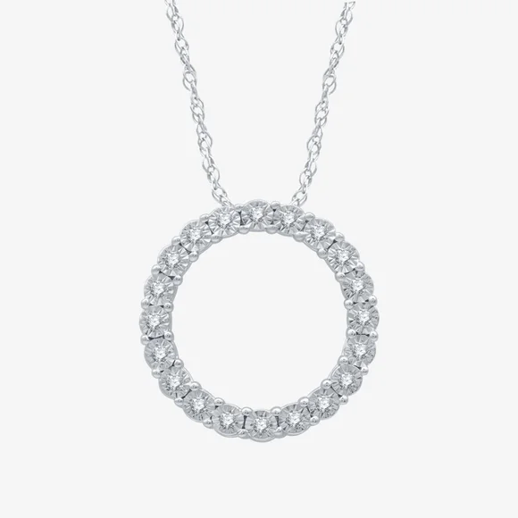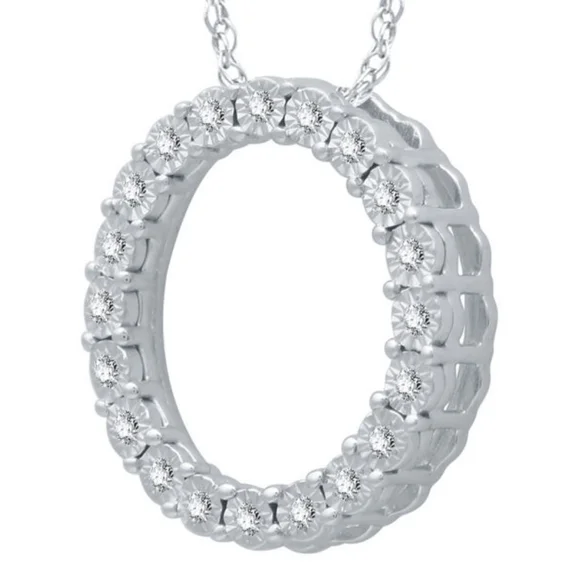 Brand New Diamond 20 Round Cut "Circle of Love" Sterling Silver Necklace