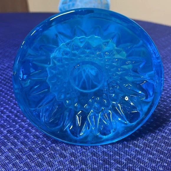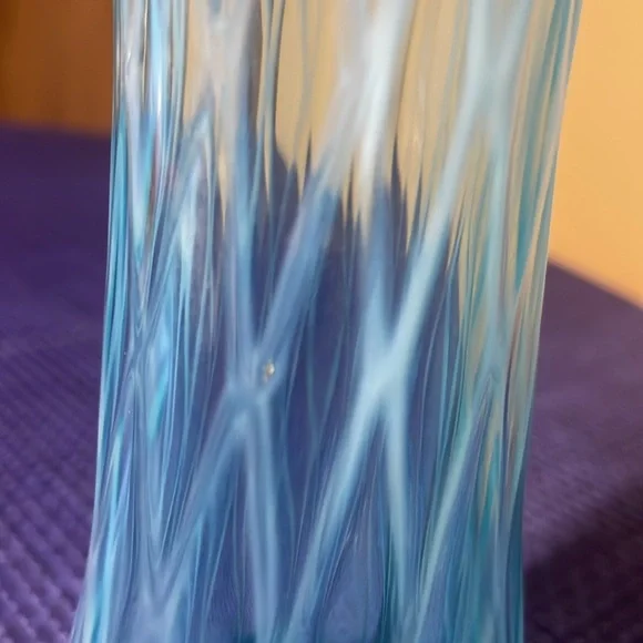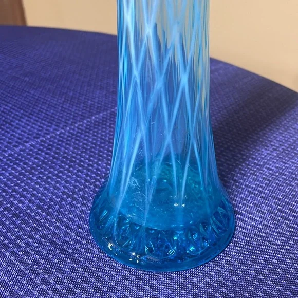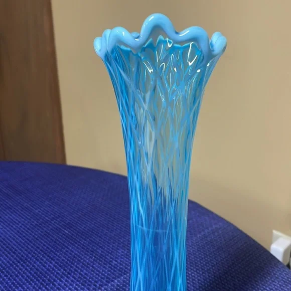 JEFFERSON GLASS CO. No. 228 (Steubenville-OH/Follansbee-WV, Co. Operated: 1900-1930), c1904 IntroducedDiamond and Oval Thumbprint opalescent blue Swung Vase12.5” tall about 3.5” diameter on top and bottom Beautiful vase no breaks or chips one tiny glass flaw shown in the last picture (211162418)