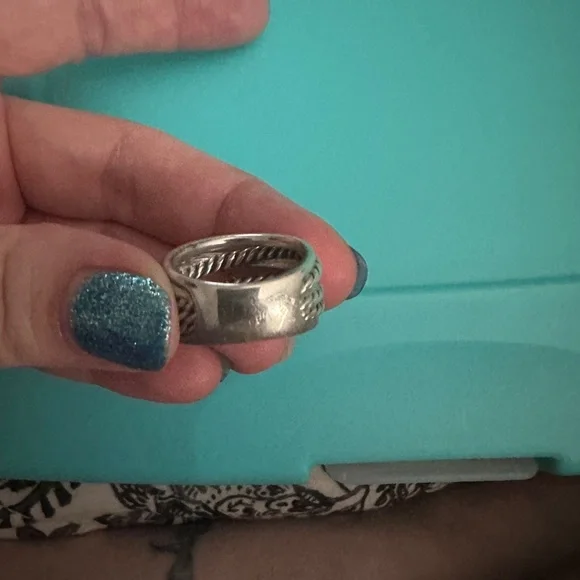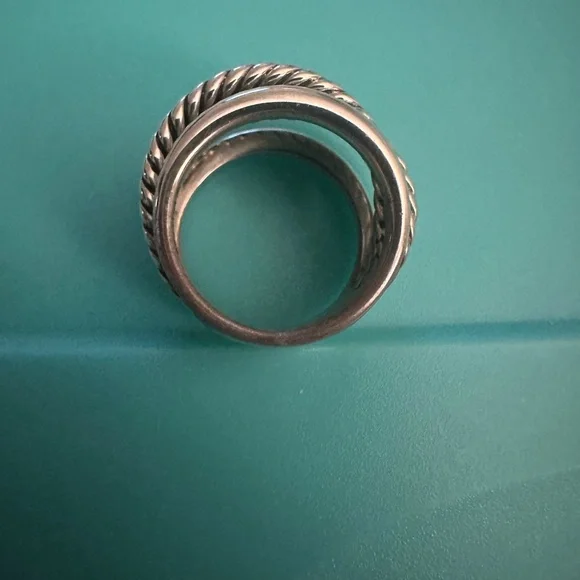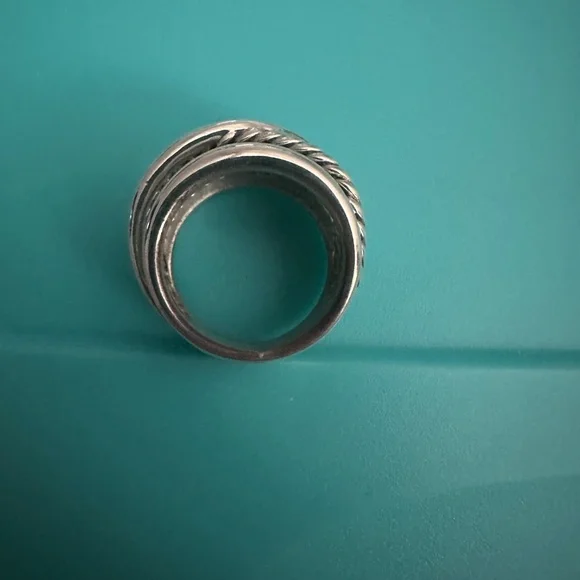 This ring is a size 7. It was recently refurbished by David Yurman. There is some normal wear and tear, but it is beautiful!Sterling silver, 17 mm.