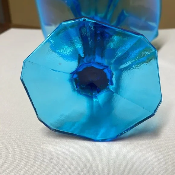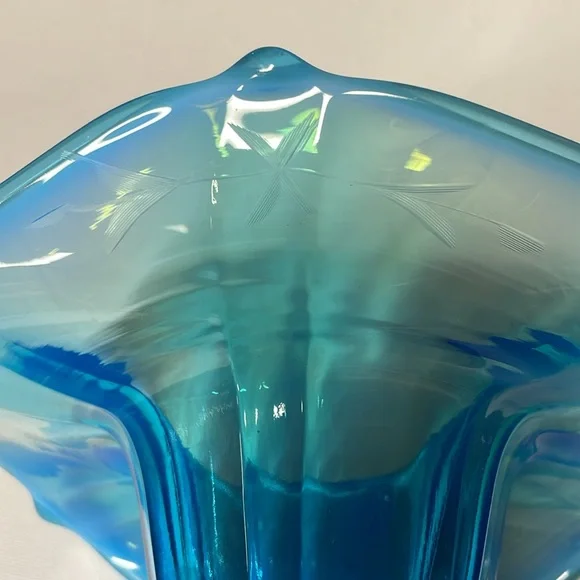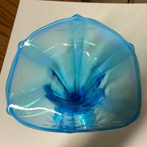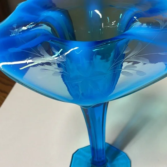 Dugan Glass Opalescent Blue Jack In The Pulpit Etched Vase 10.5” tall