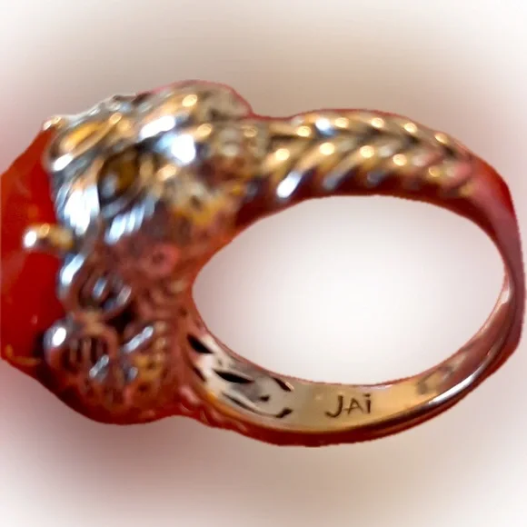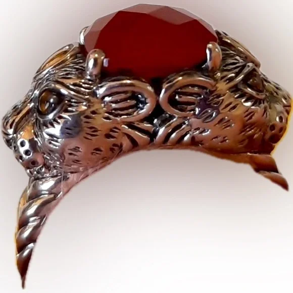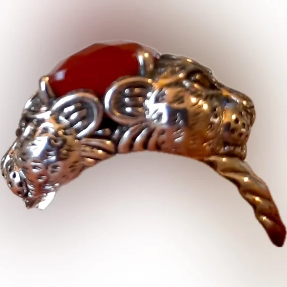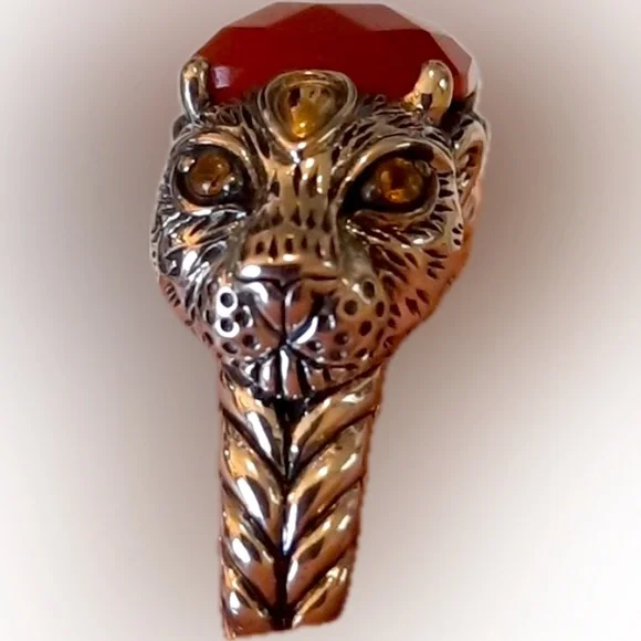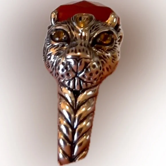 Jai by John Hardy 14k 925s Red Jasper & Citrine Jaguar Panther Leopard Cat Ring