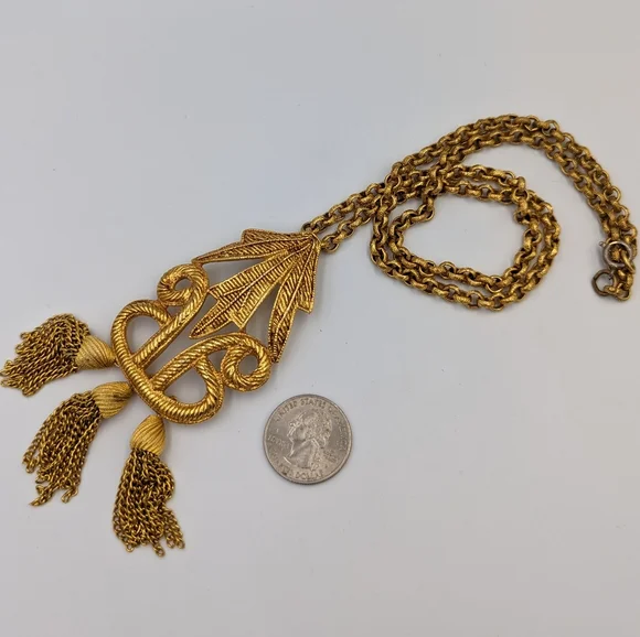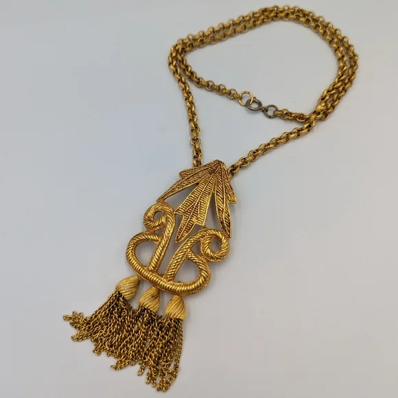 Stunning Carol Dauplaise Gold Tone Necklace with Tassels Pendant