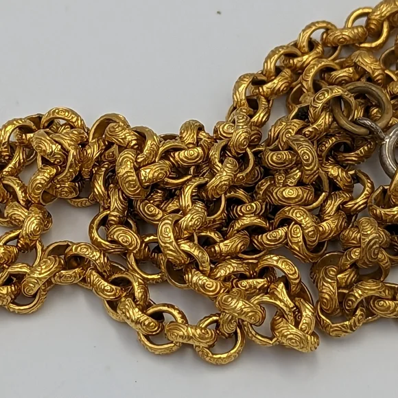 Stunning Carol Dauplaise Gold tone necklace with tassels pendantStunning Carol Dauplaise very long necklace with 3 tasselsChain is 24" long, pendant is about 4" drop Signed on back as seen in picturesGood vintage conditionCondition: Vintage / Pre-owned / beautiful Carol Dauplaise established her costume business in 1978 and has been a leader in fashion costume jewelry since her beginning.Renown for her high quality and original design. She has also worked before 1978 with Mariam Haskell.Please examine pictures carefully since they are an important part of the description. Inquire all questions before buying.More pictures available by demand