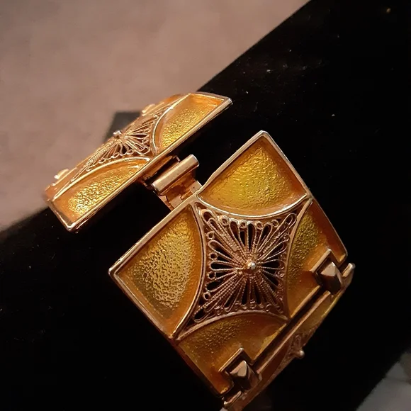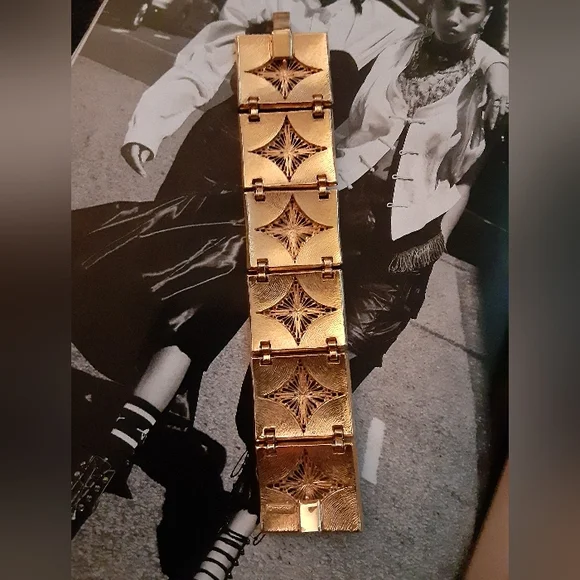 RARE Signed Vintage 1970´s VENDOME Art Deco Bracelet Color: Yellow/GoldL: 7"W: 1.25"MetalOpen Box Closure Art DecoSignedExcellent Vintage Condition.PLEASE View Pic´s!!