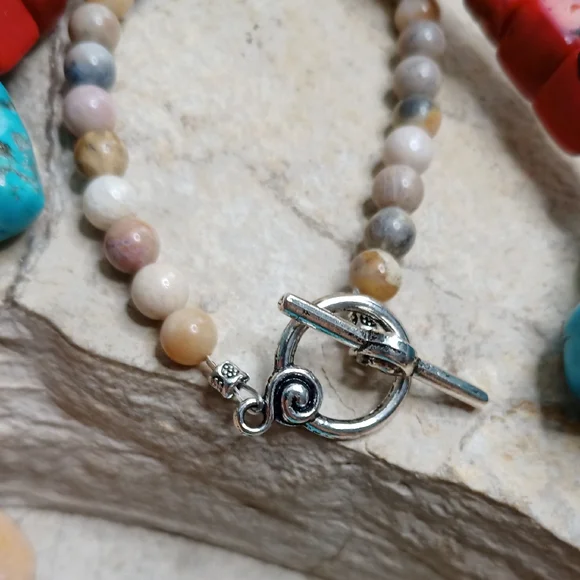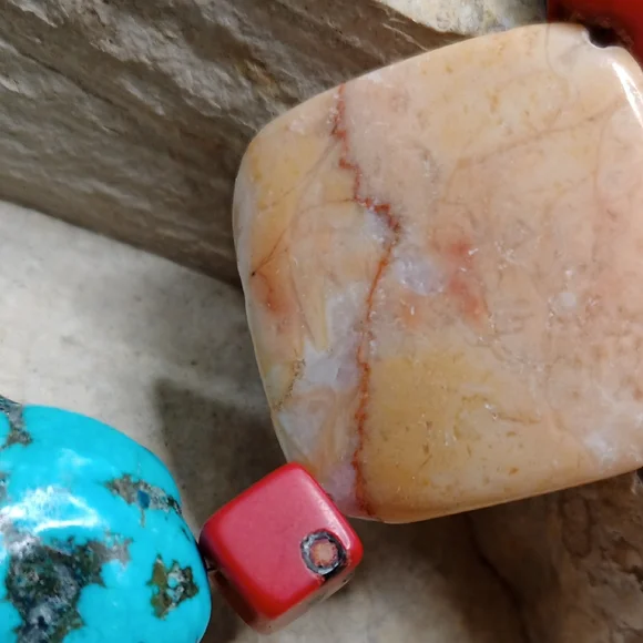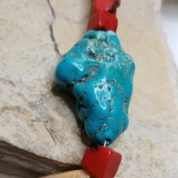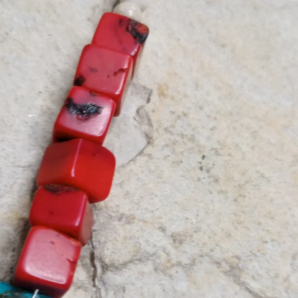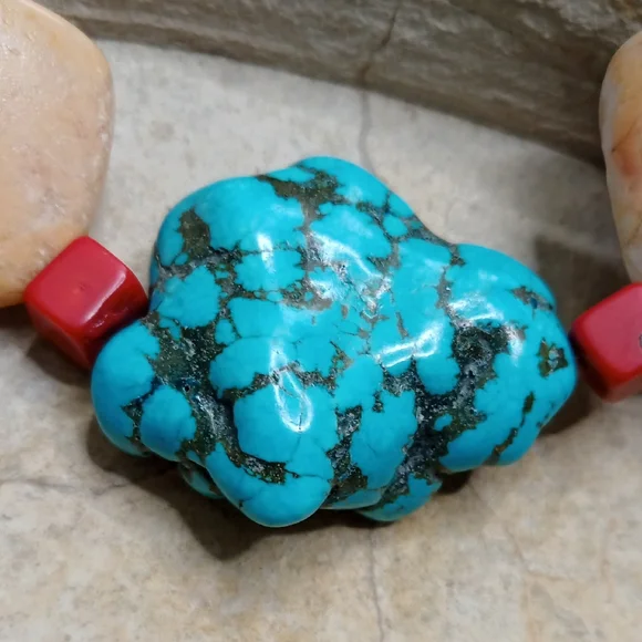 Chunky Large Turquoise and Red Coral Jasper Stone Necklace23"Elegant turquoise and red stone necklace perfect for adding a pop of color to any outfit. The vibrant stones create a...