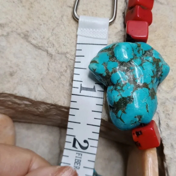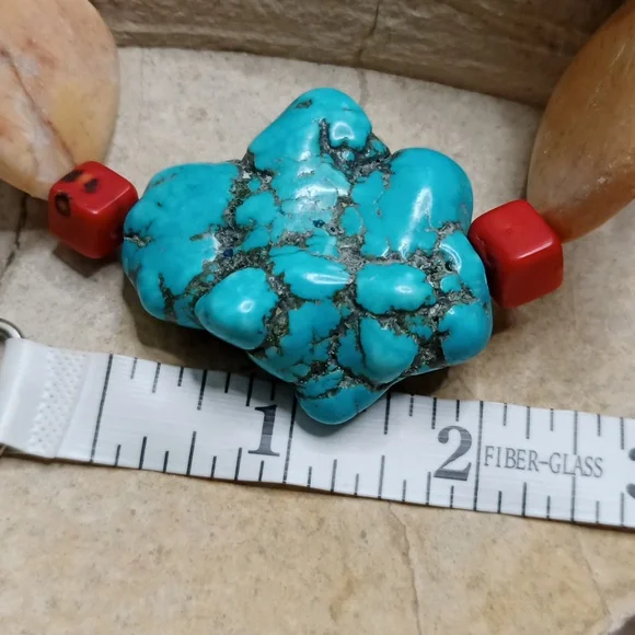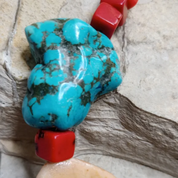 Chunky Large Turquoise and Red Coral Jasper Stone Necklace23"Elegant turquoise and red stone necklace perfect for adding a pop of color to any outfit. The vibrant stones create a striking look.