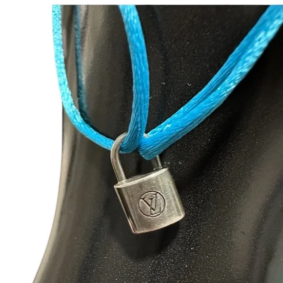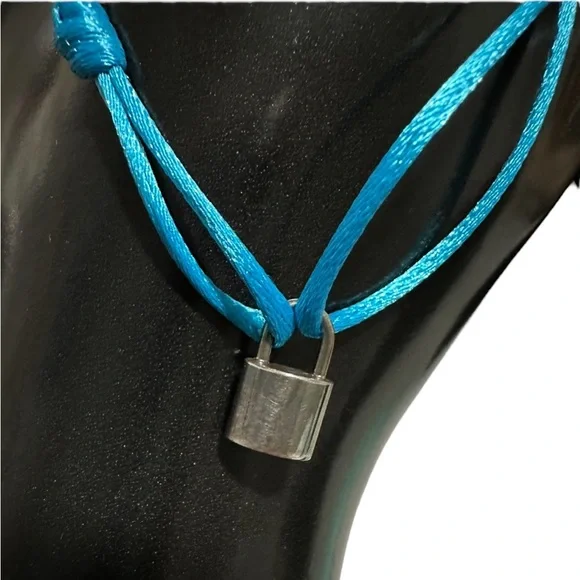 Eye-catching blue bracelet with a sleek silver LV lock pendant. Ideal for a bold fashion statement.Adjustable and in EUC! Please see all photos as they are part of the description. Please ask questions before bidding or buying. No cancellations or returns.