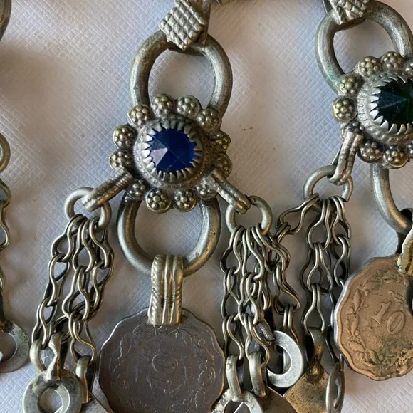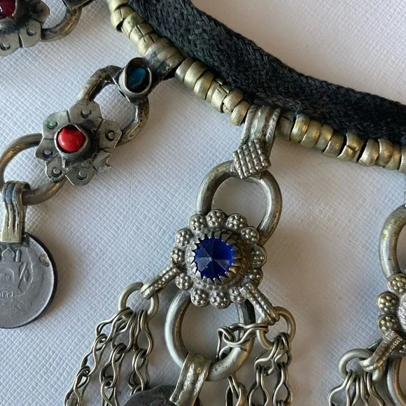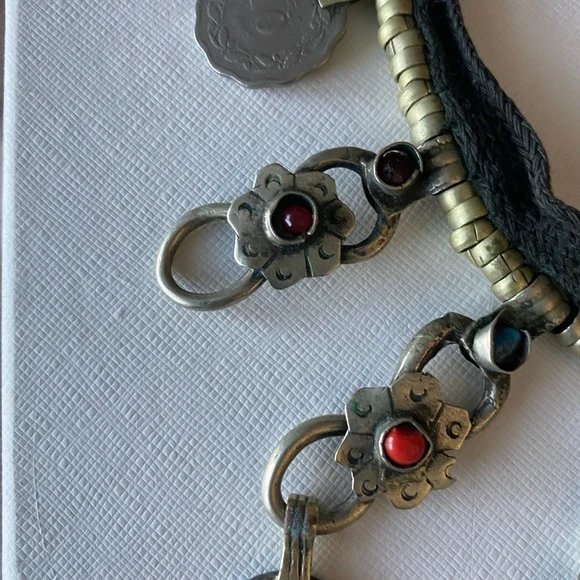Vintage one of a kind Kuchi Choker with Colourful StonesBohemian afghan chandelier necklace handmade from beautiful coins and stones This necklace makes a beautiful sound when you move - perfect for dancing! The button to attach necklace is a bit loose but can be easily sewed or taken off and just tie the necklace with a knot Questions? Leave a comment below!Free people, Marc Jacob’s, inspired, vtg, cropped, ankle pants, neon, multicolored, rainbow, patterned, colorful, marimekko, disco, retro, mod, springtime, Easter , j crew, madewell,love shack fancy, , super down, Nanushka, agolde, commando, Wilfred, aritzia, l’academie, milly, Veronica beard, re/done,American eagle outfitters, brandie Melville, grunge, punk rock, trendy, vintage, preppy, super down, revolve, Mara Hoffman, reformation, revolve, house of Harlow, Coachella, Boyfriend jeans, straight fit, relaxed fit, 501, 505, 90s jeans, 80s, mom jeans, re/done, vintage twin, shopbop, remastered, tapered, 90s fit, relaxed, nili lotan, iamgia, Levis, ragged priest, Hudson Riley, anthropologie, Abercrombie, hippie, festival, tie-dye, 70s, irani Pakistan Indian