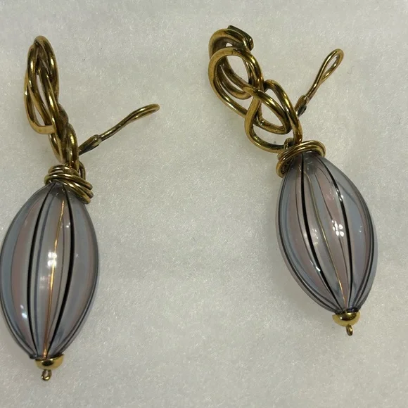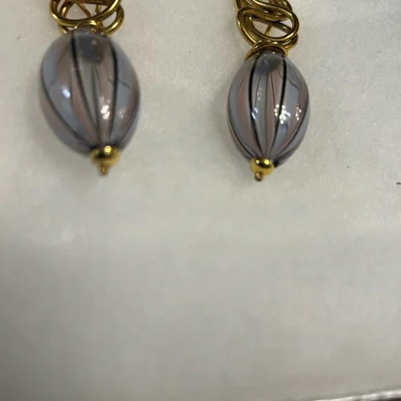 Goossens Paris gold and lavender glass designer earrings clip on