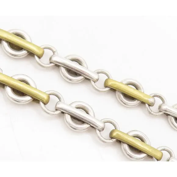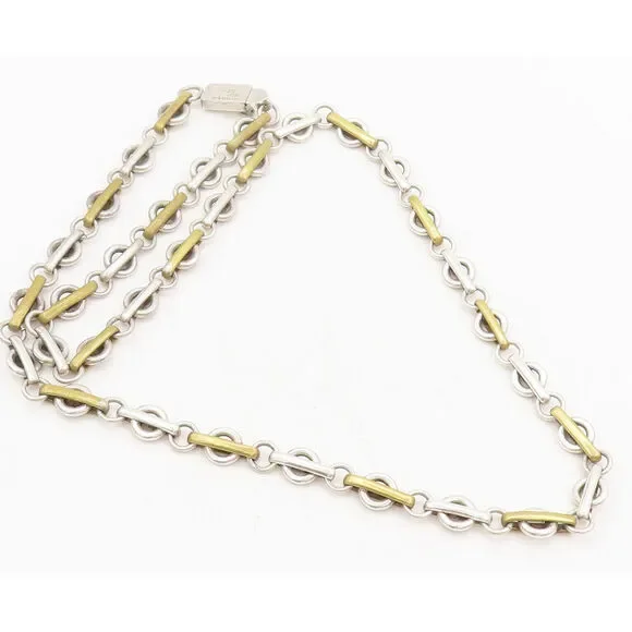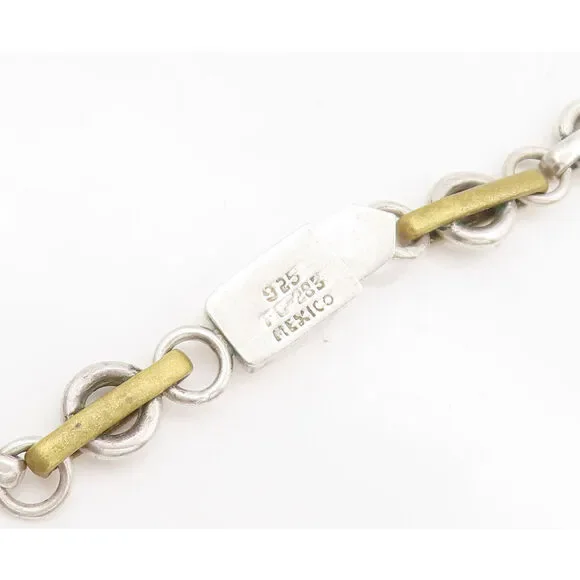 MEXICO 925 Silver Vintage Rings Connected By Golden Loop Necklace NE4189