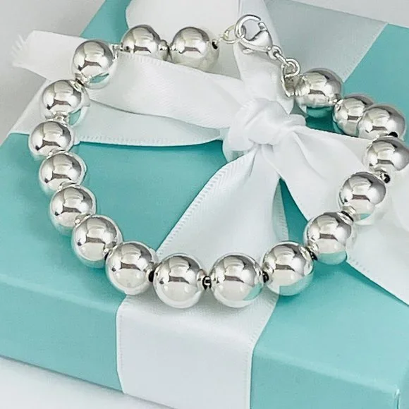 8.25" Tiffany HardWear Ball Bracelet Sterling Silver 10mm Beads