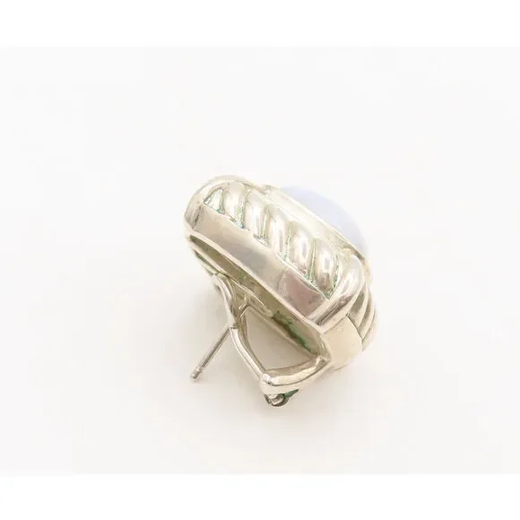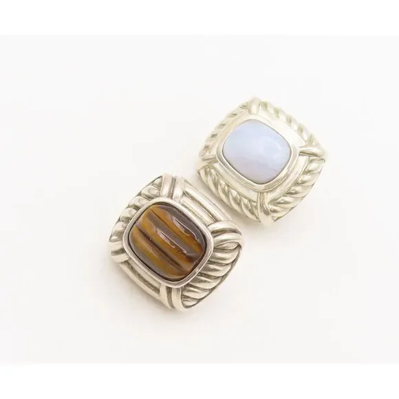 JUDITH RIPKA 925 Silver Vintage Moonstone Tiger Eve Carved Earrings EG12699