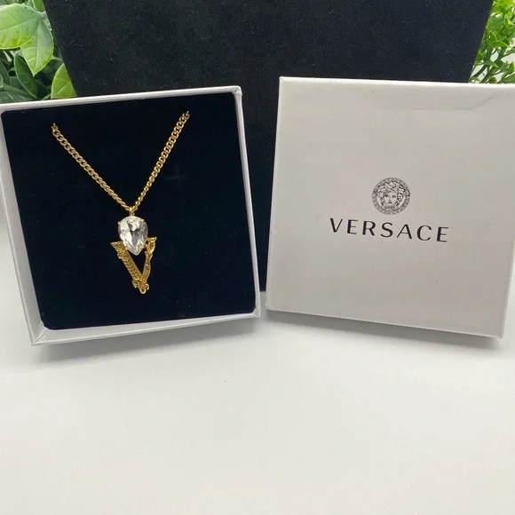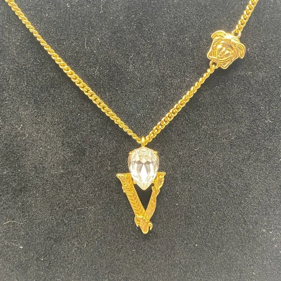 AUTHENTIC Stunning Versace Gold Necklace with Clear Crystal Accent