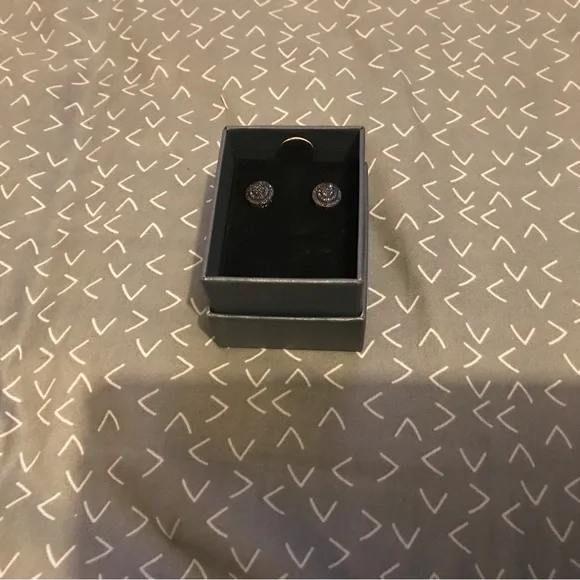 Pavé diamonds in a classic silhouette bring stunning sparkle to these stud earrings.Approx. 3/8"L x 3/8"WStamped .925 sterling silver; rhodium platingScrolled basket settingPierced with clutch backsPolished finishGift boxedBlack Diamond - Round; 1/2ctw - ranges from 0.47ctw to 0.56ctw; Color: H-I, Clarity: I2