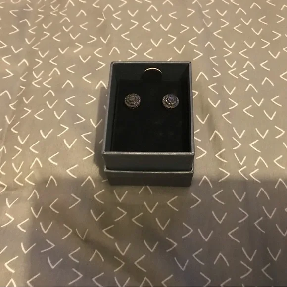 Pavé diamonds in a classic silhouette bring stunning sparkle to these stud earrings.Approx. 3/8"L x 3/8"WStamped .925 sterling silver; rhodium platingScrolled basket...