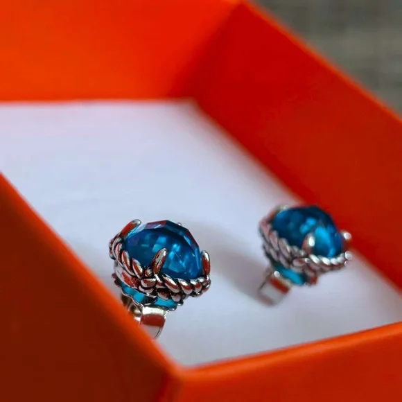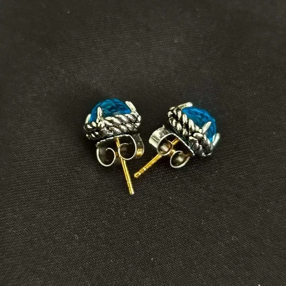 David Yurman Sterling Silver & Blue Topaz Stud Earrings