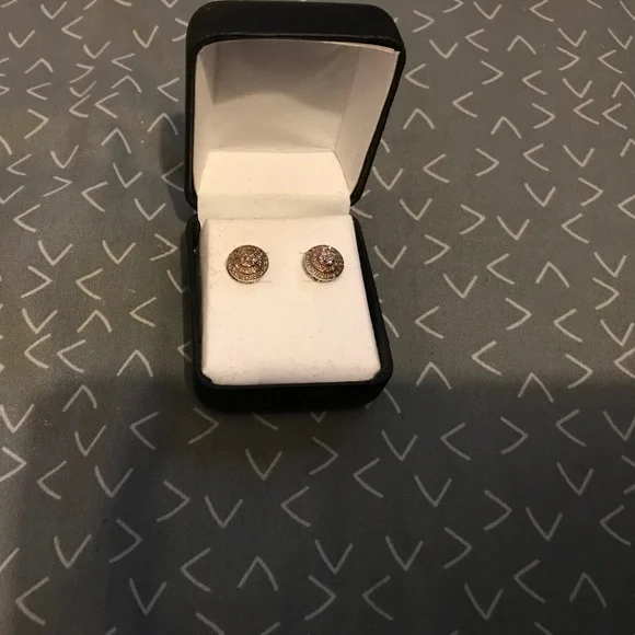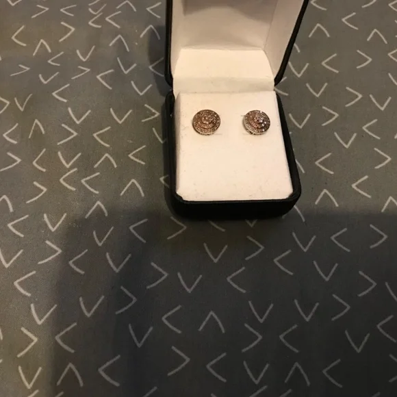 Pavé diamonds in a classic silhouette bring stunning sparkle to these stud earrings. Approx. 3/8"L x 3/8"W Stamped .925 sterling silver; rhodium plating Scrolled basket settingPierced with clutch backs Polished finish Gift boxed Stone Information All sizes and weights approximate champagne Diamond - Round; 1/2ctw - ranges from 0.47ctw to 0.56ctw; Color: H-I, Clarity: I2