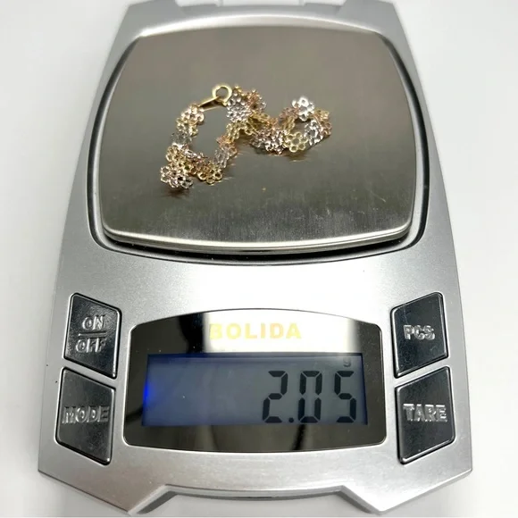 14K Yellow Rose White Gold Flower Link Fancy Bracelet 1.90g - New
