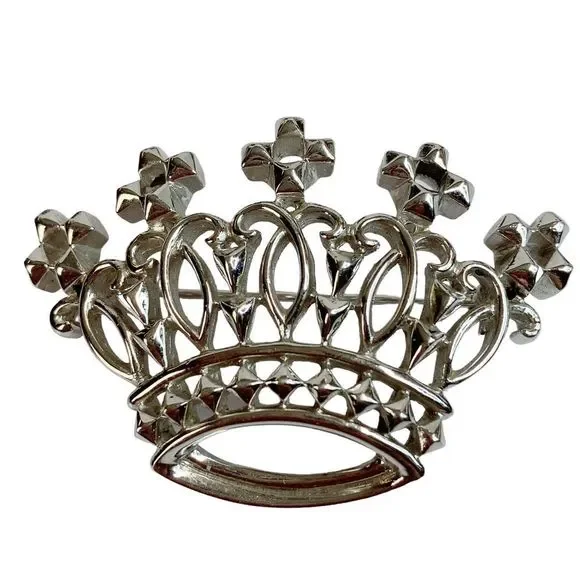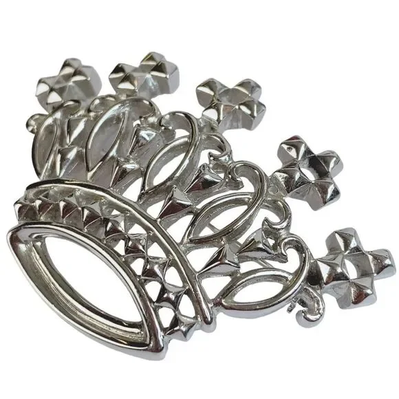 VERY RARE Crown TRIFARI Alfred Philippe Coronation Cross Silvertone Pin Brooch